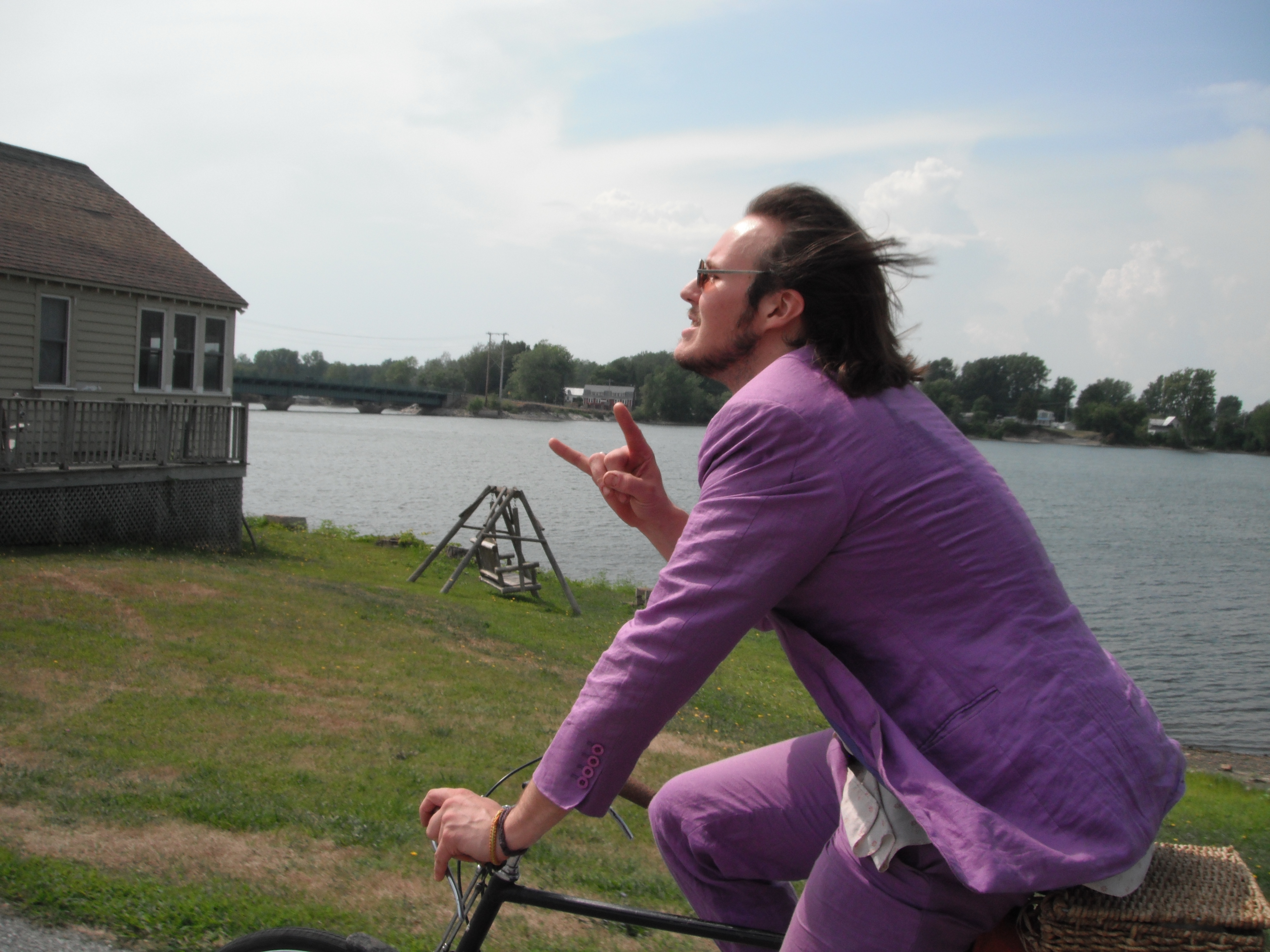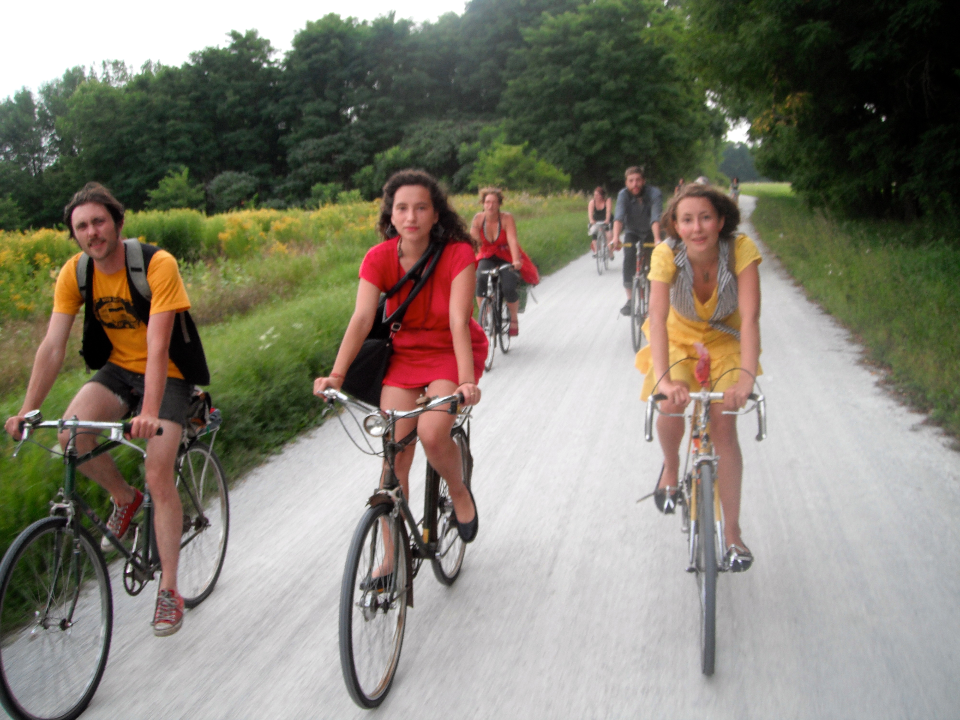 This Sunday I drove past the gates of the North Hero State Park and down a narrow road to join a group of thirty costumed cyclists for the second “Decade” bike ride of the summer. Everyone had gathered in the grassy parking lot and exhibited their feathers, bells, whistles, hats, and spandex while they snacked on pre-ride peaches. When the bike bells began in a frenzied chorus, we all set out for our grand ride. During the first ten miles, we danced upright on our seats to “The Big Chill” soundtrack that crackled out from someone’s plastic tape player.