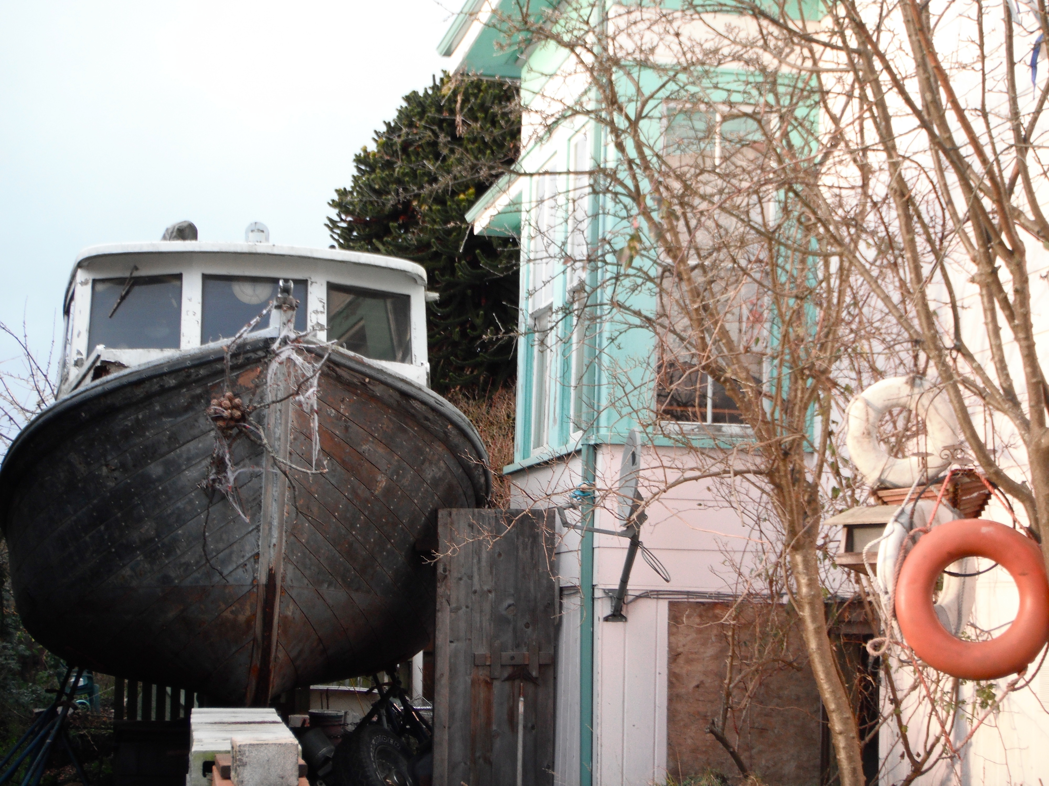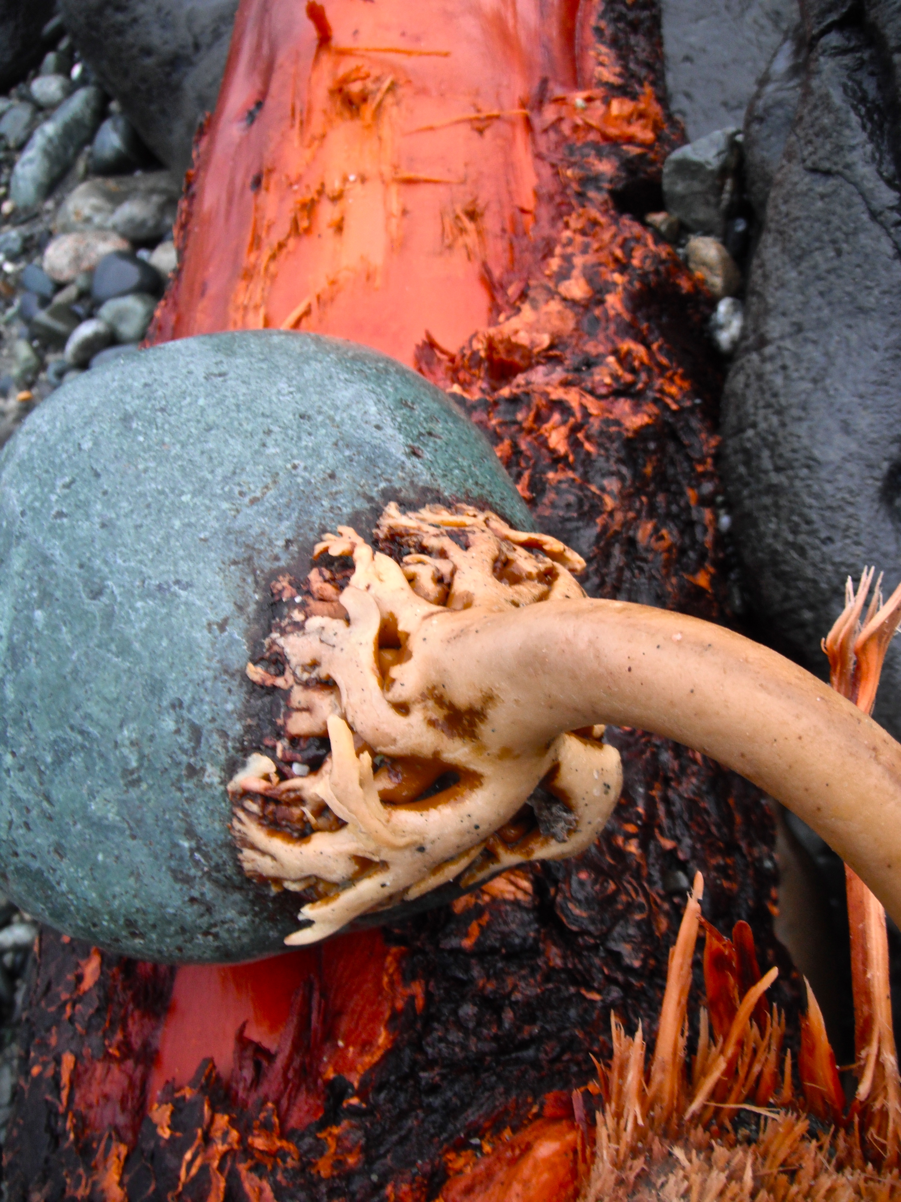 We visited a town which seemed so utterly familiar to me, but this sense came to me from novels, not necessarily my own experience. The references to blackberry brambles and foggy roadside stops in Tom Robbins novels, and the abandoned logging roads in Sometimes a Great Notion. Although this town was far from the small Oregon coastal town Manzanita, which my family frequents, the architecture and vegetation was nearly indistinguishable: cabins with greying, moss covered wooden slats, Pacific Madrona trees with peeling red skin, water logged mushrooms, ocean grass, sand-pipers birds darting across smooth, wet stones.