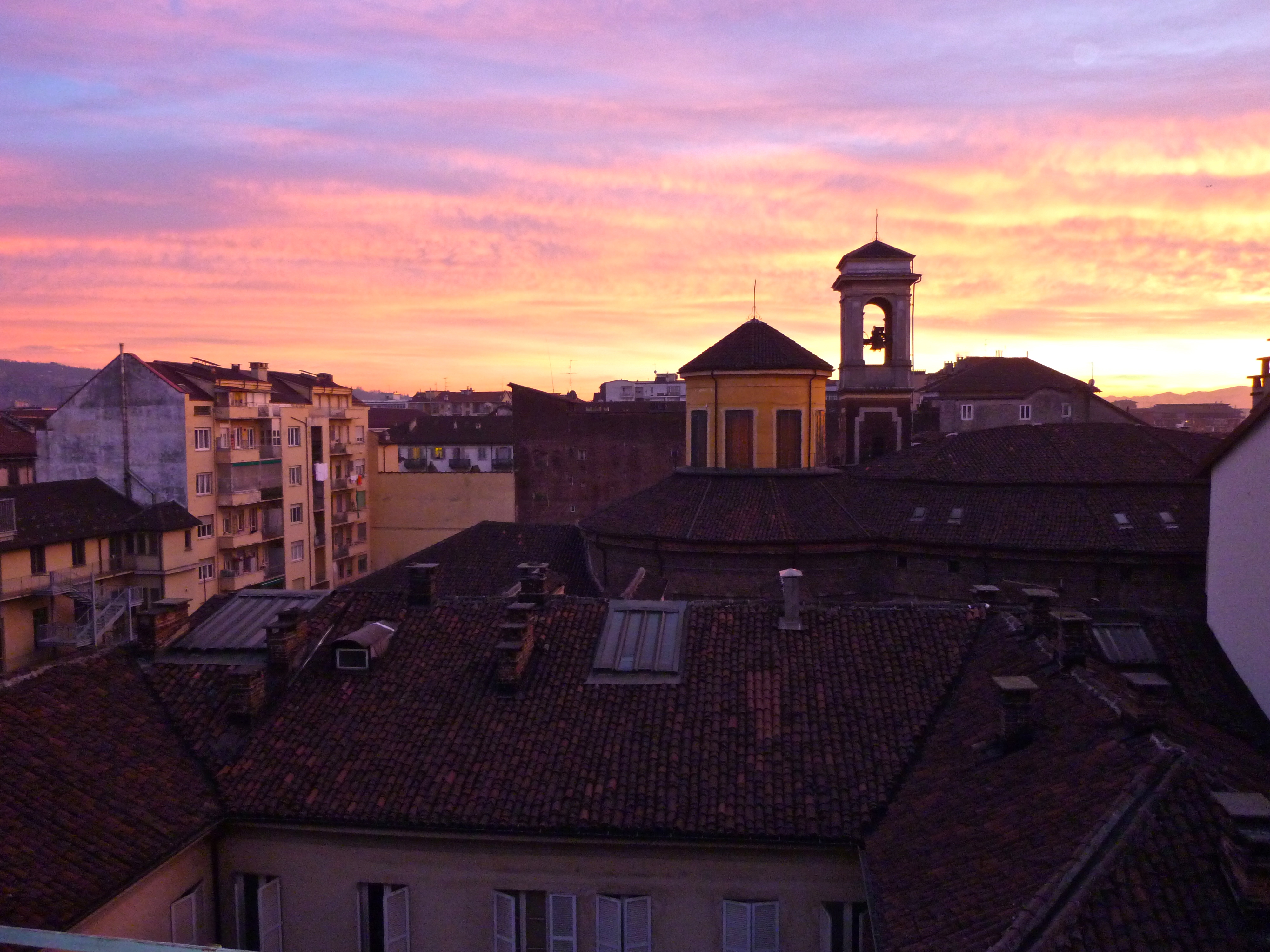 In Turino, we are staying with the nicest folks imaginable: Giovanna, Fabrizio, and Sal. They turned their living room into a bedroom for the three of us and have been giving us a magical tour of the town, with the stories behind every building (renaissance, medieval buildings, fascist architecture, and modern.) There are weird modern sculptures everywhere, including bicycles on poles with wheels that light up to produce images, and a story in neon letters that continues for about 8 kilometers towards the Po river. One building has a giant piercing, complete with a little blood. Another tower has the Fibonacci sequence (golden ratio) lit up in red climbing the tower. They brought us to one of the oldest cafes in Turino, where many old italian films were made, and kindly bought some cioccolato caldo (real melted chocolate, no powdered crap), and a bicherin, which is chocolate liquor. We then dined at my favorite restaurant of the trip as of yet, a classic Sicilian restaurant, seafood specialties. We had four types of fish antipasti, some of which included sauteed squid, spada (swordfish) tartar, Dentiche (halibut, I believe). I ordered the Dentiche cooked in a packet with herbs and oil, and liza got bucatino, a hollow pasta served with sardine sauce. We also had two glasses of fantastic white wine and since we were the last people in the restaurant, the waiter served us limoncello for a digestivo. Sal gave us a little house concert: Tom Waits, Johnny Cash.