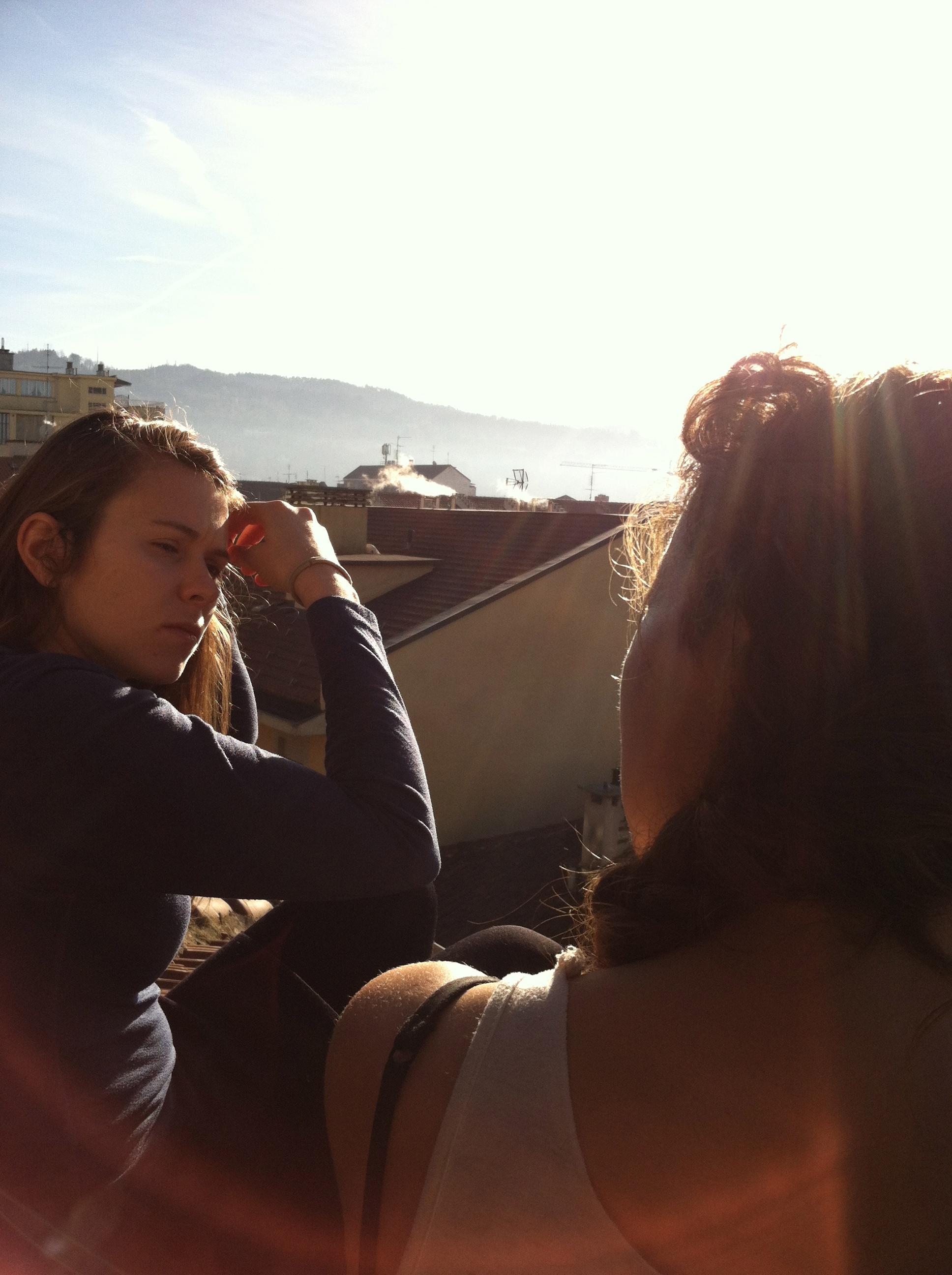 We went to explore the “balloon” market, just as large as the flea market in Paris, with just as many great, odd treasures. I bought a fur collar for a euro, and some leather boots, hooray. The food market nearby was just as large and cheap, to our delight, and all of the vegetable stands sold produce that was Actually in season, something quite different from the Firenze markets. We are making pizza with our hosts tonight, so we bought olives, feta, mozzarella, arugula, and prosciutto. For our own lunch: crunchy bread, a big chunk of spiced and smoked pastrami, olives, feta.