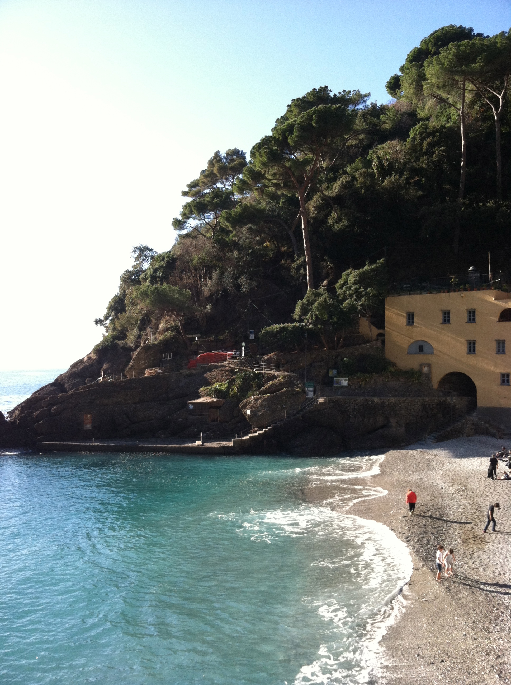 There are all sorts of splendid hiking trails all over this peninsula, steep secret trails through the olive groves, in the hills with hot rock lizards, wild boar, and views of ancient abodes. We walked to Portofino, a little town where cars aren’t allowed, and all of the buildings are lit with cheesy but beautiful christmas lights. The trails begin right outside our door, and we followed a trail up a mountain and down into a narrow valley to San Fruttuoso, so stunning I could have cried. Instead, we swam in the sun and fell asleep on sun hot stones.