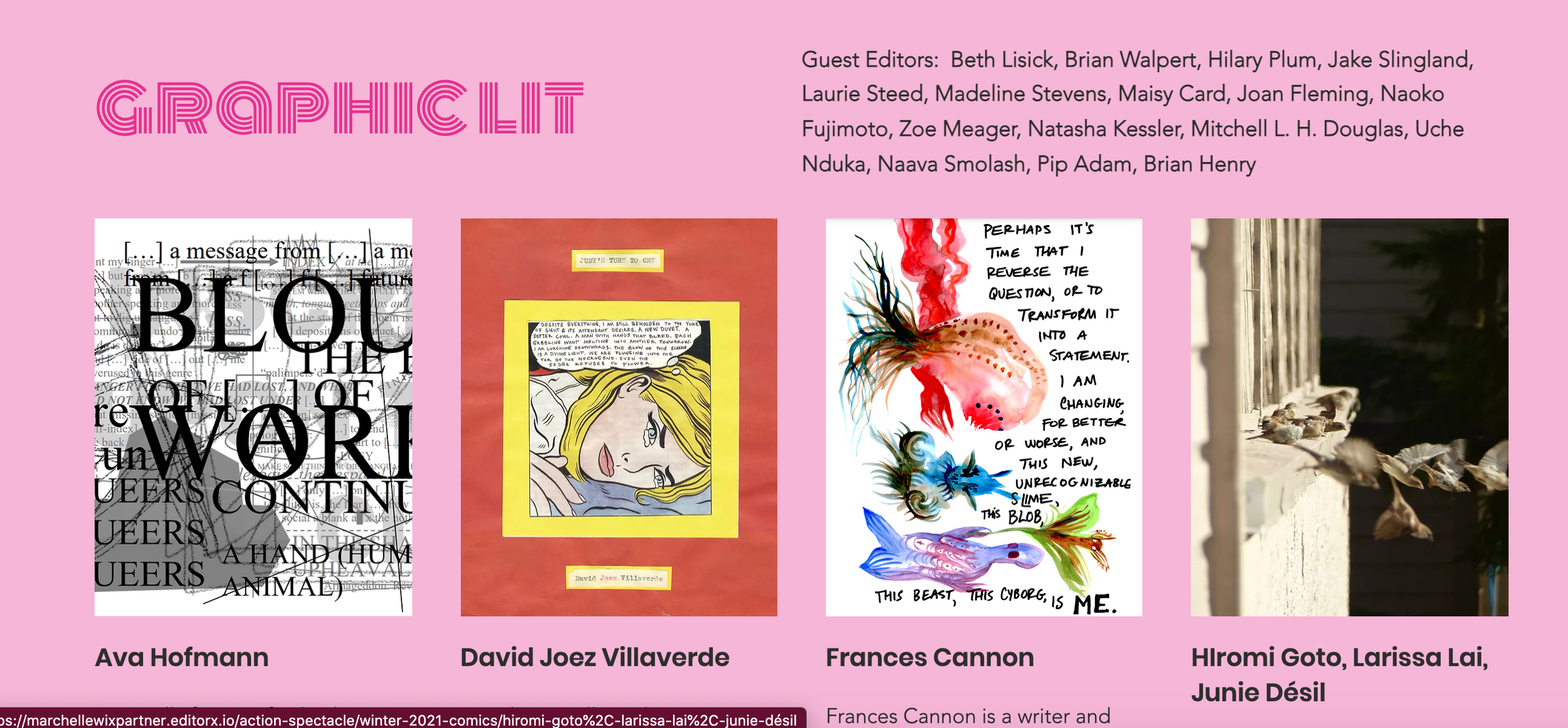 My work has been published in a new volume of art and literature by Action, Spectacle. Take a look at my work here.