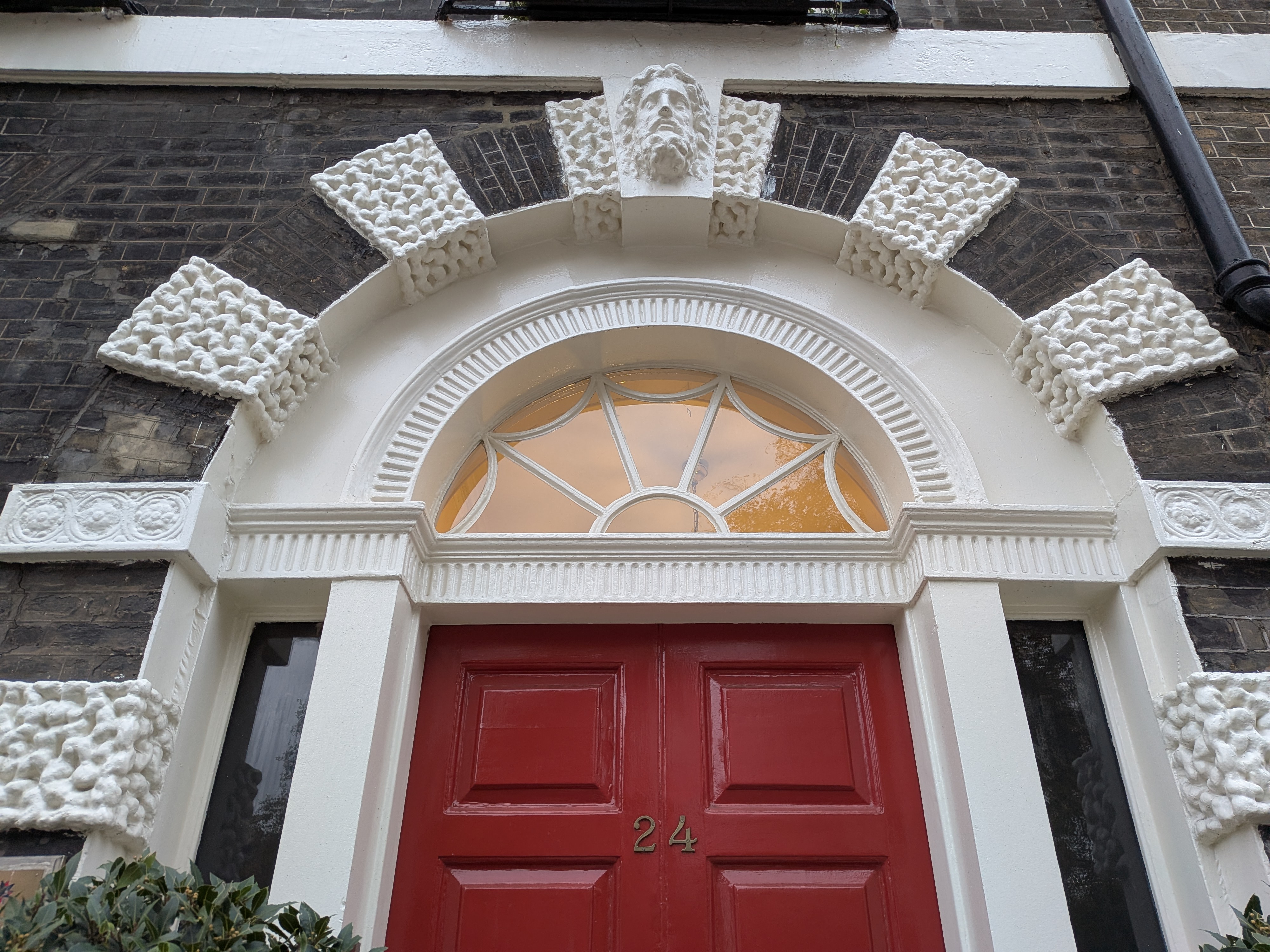 Many grottos and grotesque fountains are built using shells as decoration, such as the shell house in Grosvenor Gardens. I’m more drawn to the rough, cave-like “rustication” textures, and the vermiculated architecture where a stone surface is carved with a texture resembling worm tracks in mud (from the Latin vermiculus, “little worm”).