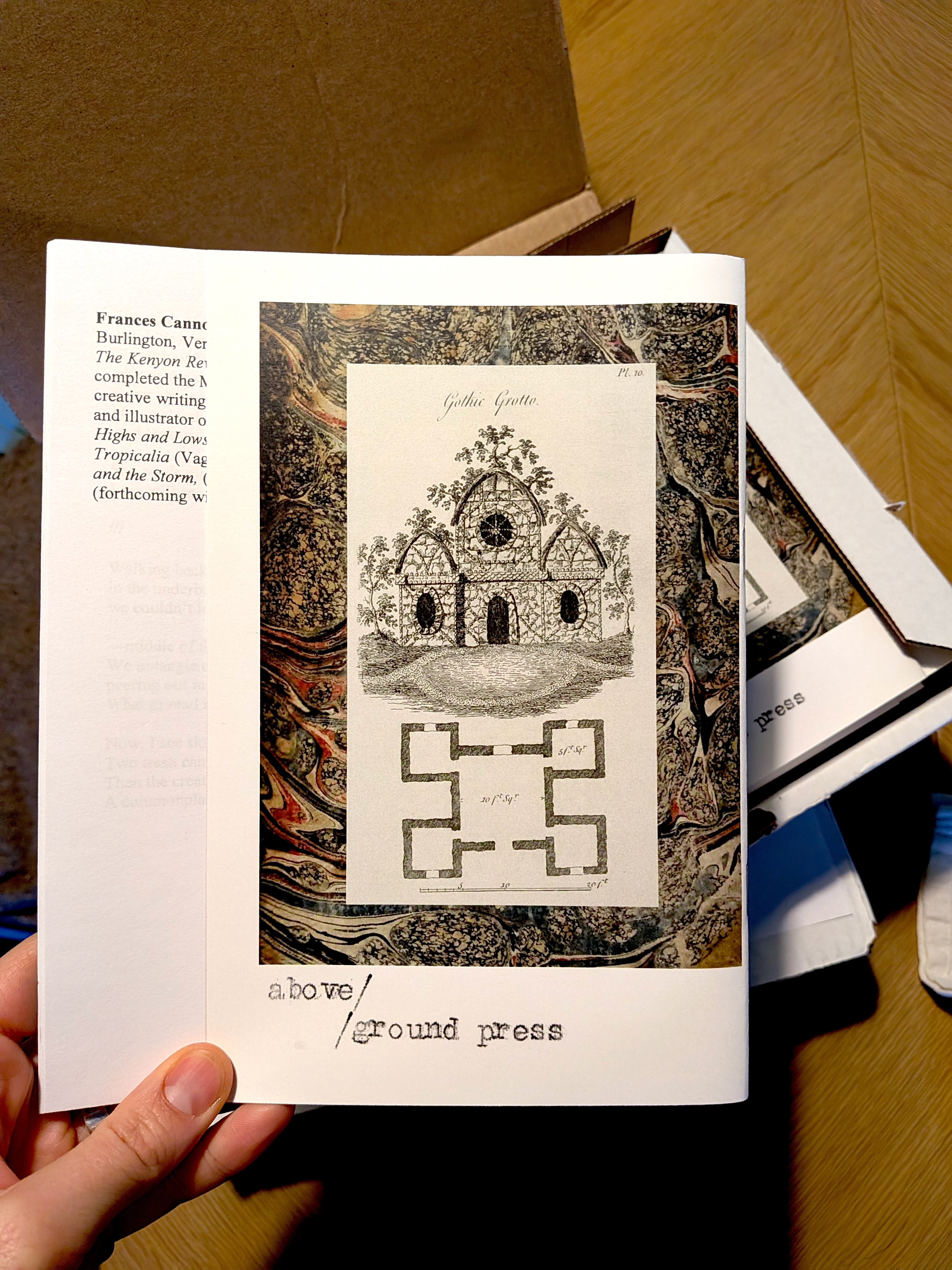 I have a new chapbook of poems, “Grotto,” published by above/ground press.