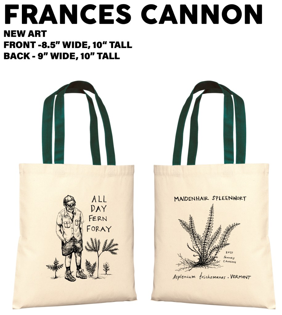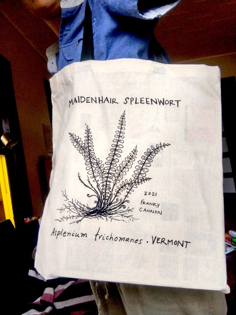 I designed this tote bag after attending a fern foray with a group of enthusiastic botanists in Vermont. The price per tote is $20 for one, or $30 for two. Pay via Venmo, and email me with your address so that I can ship you a tote: frankyfrancescannon@gmail.com